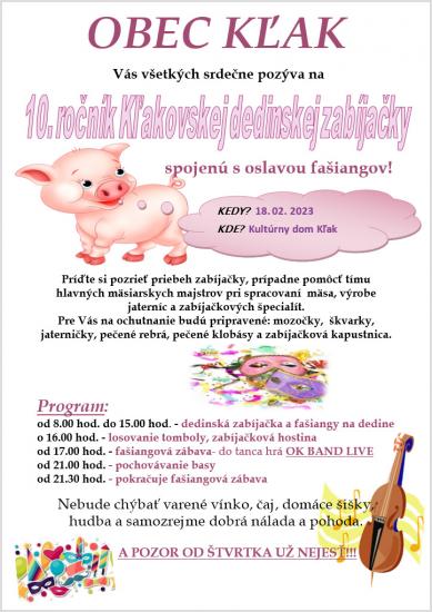 od 8.00 hod. do 15.00 hod. - dedinská zabíjačka a fašiangy na dedine